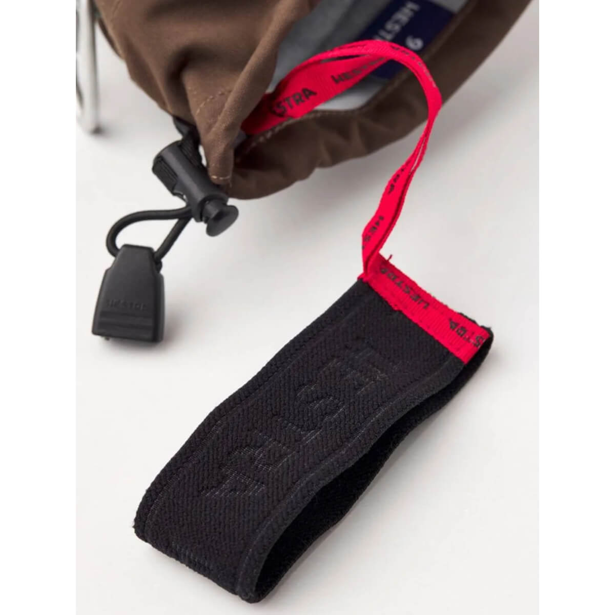 Ranteessa on Velcro-tarrakiristys, mikä mahdollistaa tiukan säädön, ja lisäksi lumilukko estää lumen pääsyn hanskaan. Rannesilmukka ja karabiini antavat mahdollisuuden kiinnittää hanska reppuun tai varusteisiin.