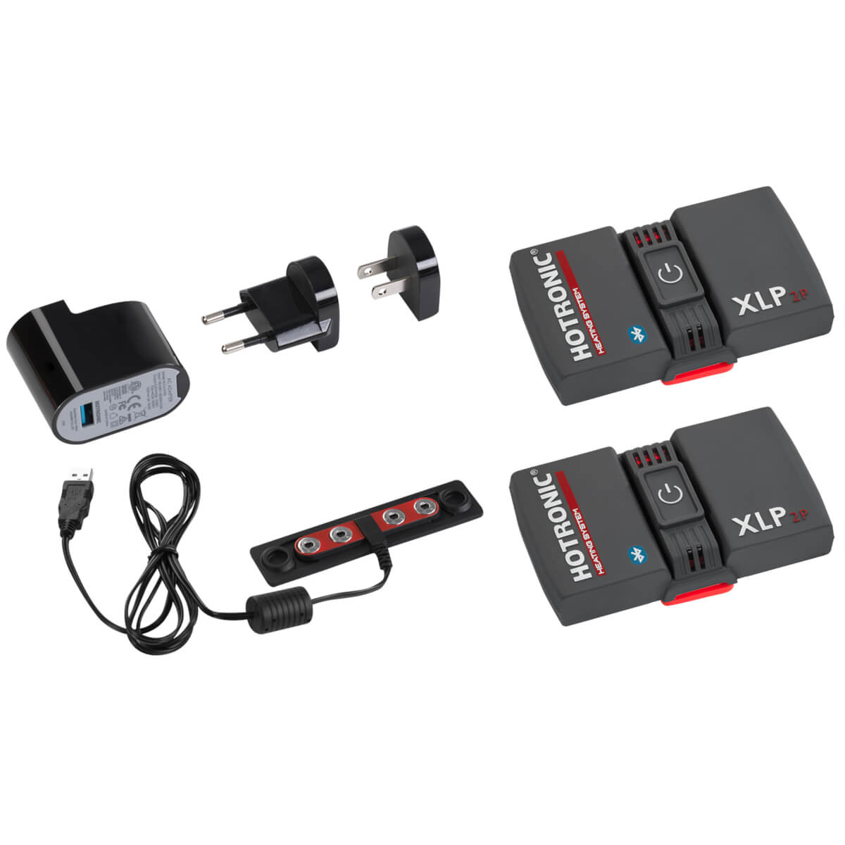 Vaihtoakut ja laturi Hotronic akkusukkiin. Paketti sisältää kaksi akkua ja laturin.