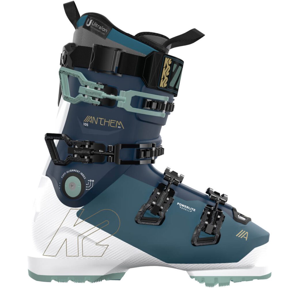 K2 Anthem 105 MV on kevyt, ihanasti jalkaan istuva ja tarkka naisten laskettelumono. Powerlite kuoren ansiosta mono on kevyt, mutta samanaikaisesti todella suorituskykyinen. PrecisionFit Pro sisäkenkä on valmiiksi muotoiltu sopimaan naisten jalkoihin. Lämpömuokkausominaisuudella kyseisien sisäkenkien istuvuutta voidaan vielä hioa super hyvin istuvaksi.