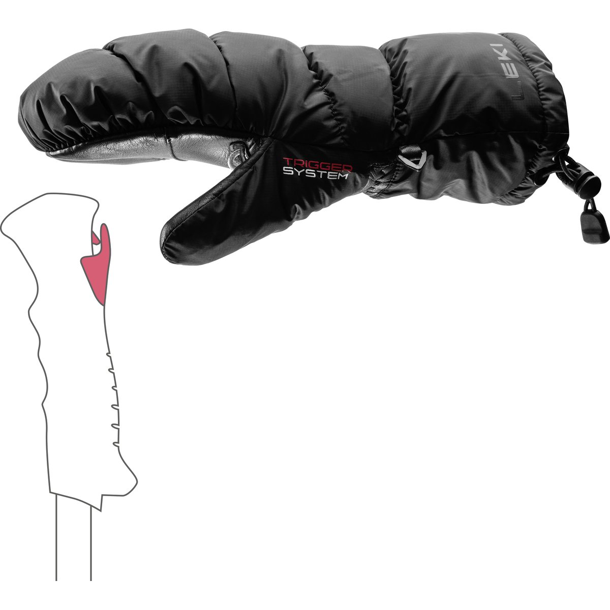 Hanskan kämmenpuolella on käytetty lampaannahkaa, mikä parantaa hanskojen kestävyyttä. Uusi Trigger 3D systeemi mahdollistaa hanskojen käytön yhdessä kaikkien Leki Trigger S sauvojen kanssa. Click!