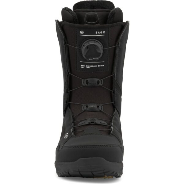 Ride Sage Black on monipuolinen ja mukava naisten lumilautakenkä, mkä on suunniteltu all-mountain-ajoon, etenkin aloittelijoille sekä keskitason laskijoille. Pehmeähkö flexi tekee kengästä anteeksiantavan ja mukautuvan, mutta silti riittävän jämäkän hallittuun lautailuun vaihtelevissa olosuhteissa.