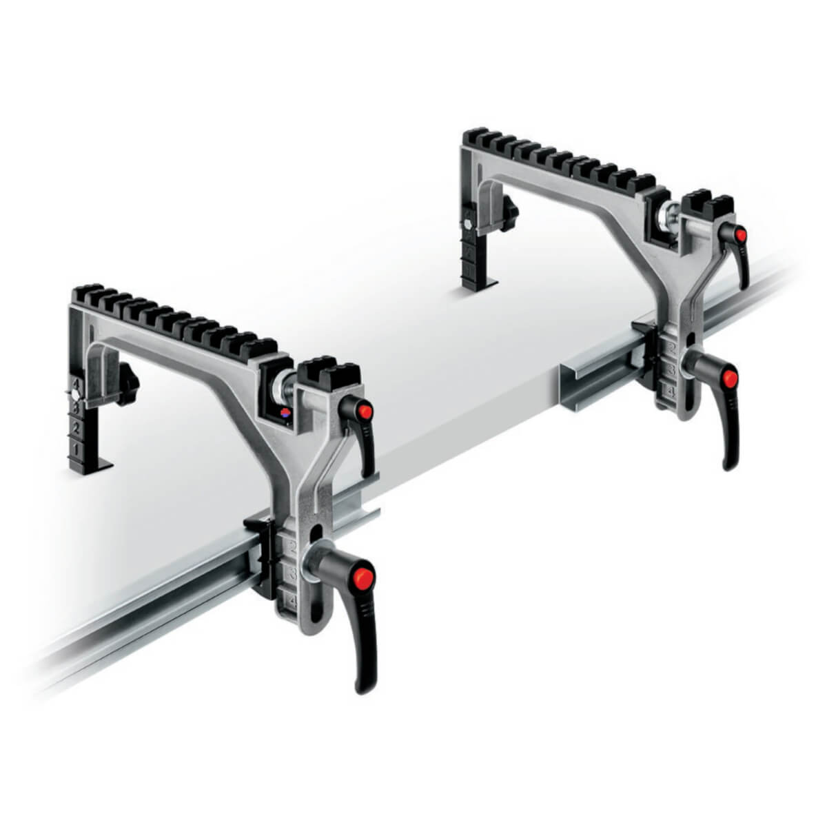 - Paketti sisältää 2kpl telineitä sekä pöytään kiinnitettävät kiskot