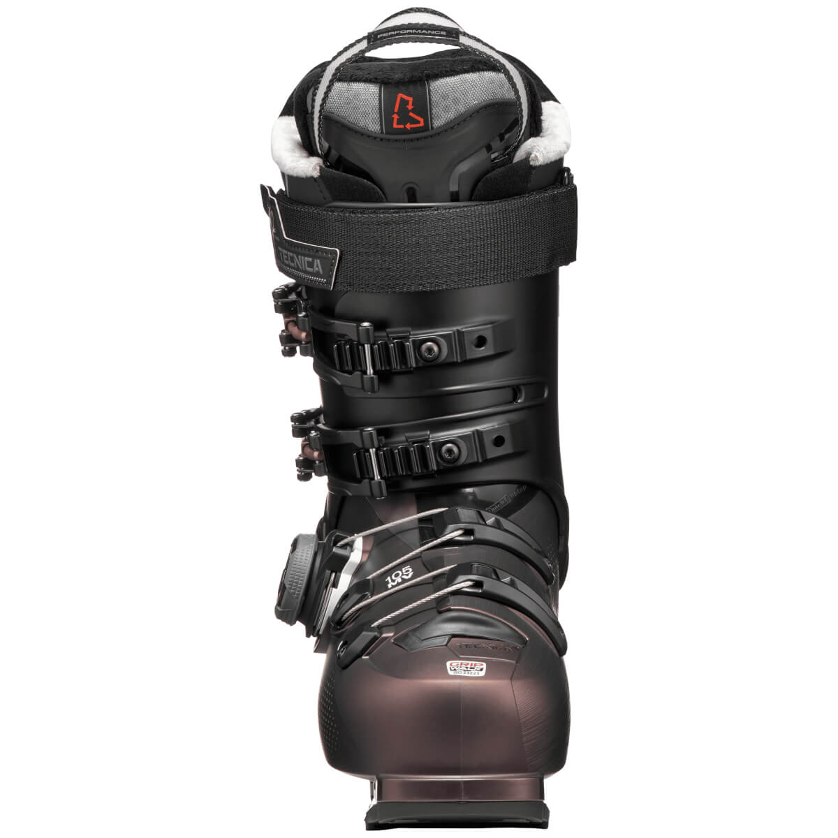Tecnica Mach BOA MV 105 W GW on naisille suunniteltu laskettelumono, mikä soveltuu monipuoliseen ja vauhdikkaaseen laskuun, pitäen mukavuuden kuitenkin mielessä. Flex 105 tarjoaa riittävästi jäykkyyttä aggressiiviseenkin ajoon, mutta keskivolyyminen istuvuus pitää tuntuman riittävän pehmeänä niille, jotka arvostavat mukavaa istuvuutta.